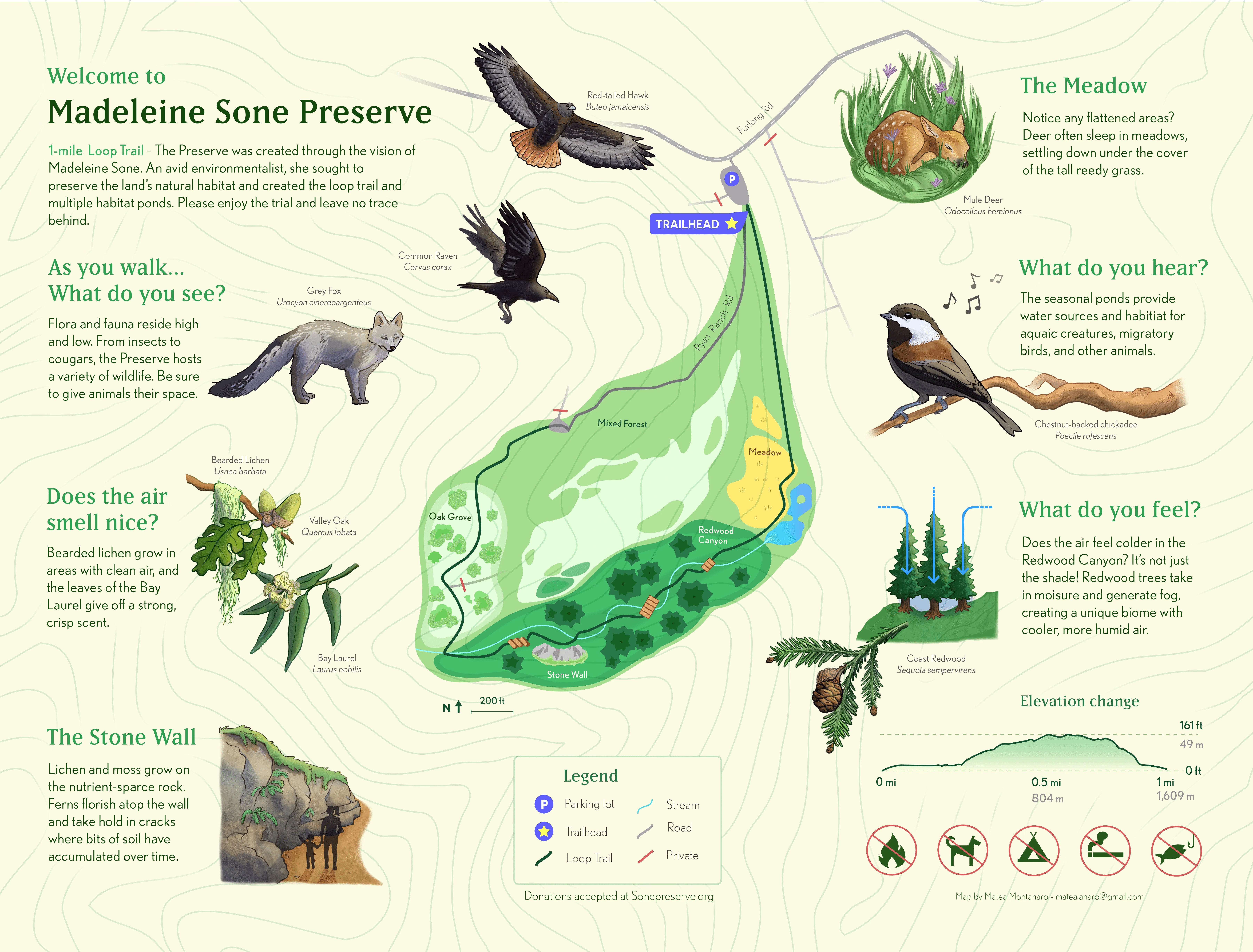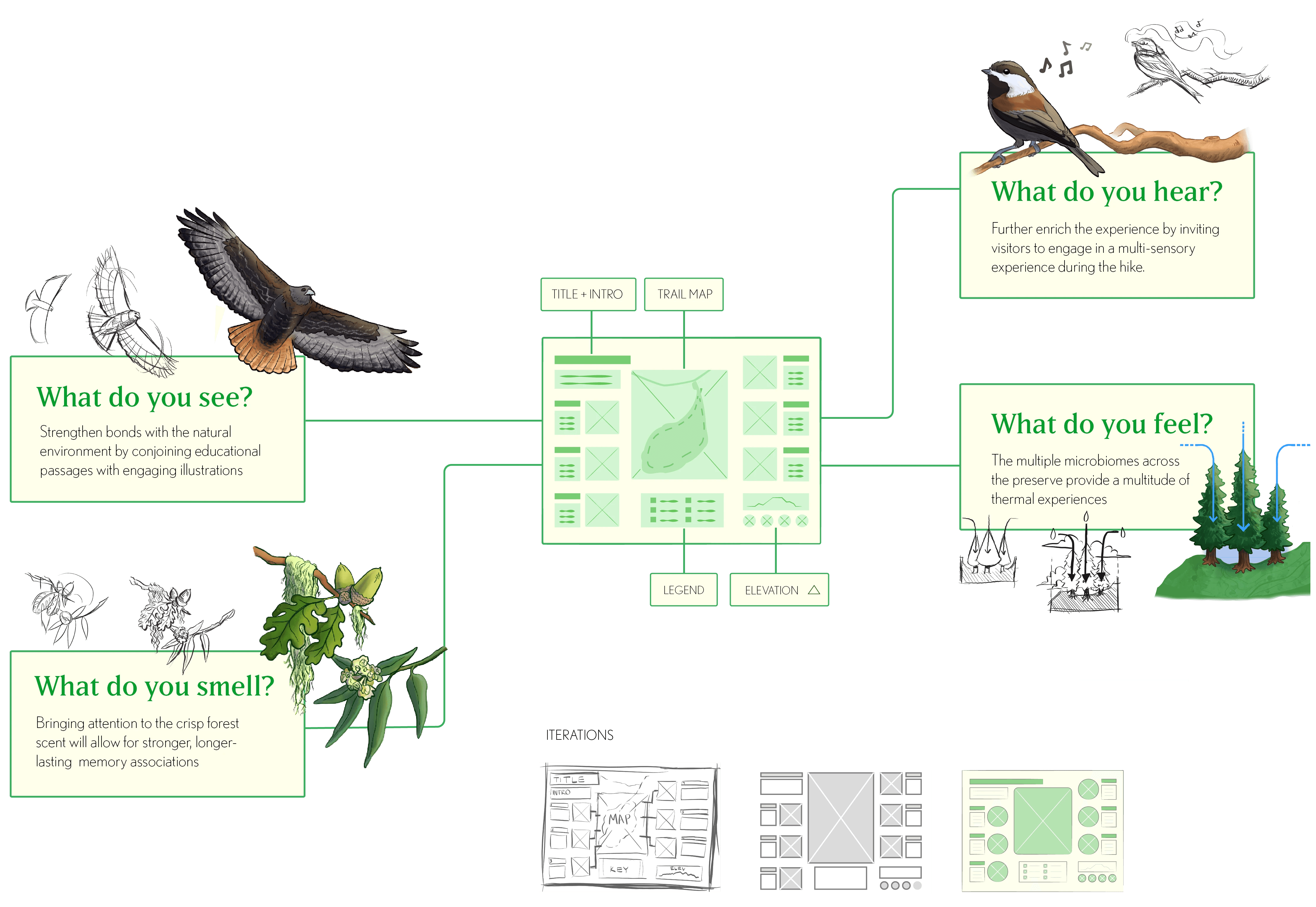 I combined wayfinding and multi-sensory educational content to encourage children (and adults) to notice the incredible ecosystem of the Sone Preserve